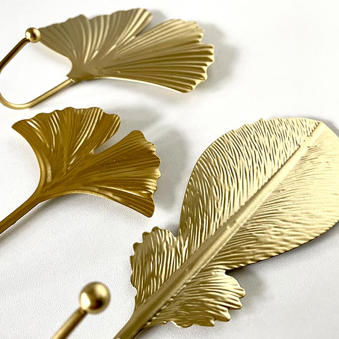 Deze goudkleurige wandhaken zijn multifunctioneel en te gebruiken voor alles wat je graag op wilt hangen. Jassen, kleding, theedoeken, of bijvoorbeeld een poster met een mooie plantenprint. De goudkleurige wandhaken komen met z’n drieën en doen het het leukste aan de muur als je ze bij elkaar hangt.