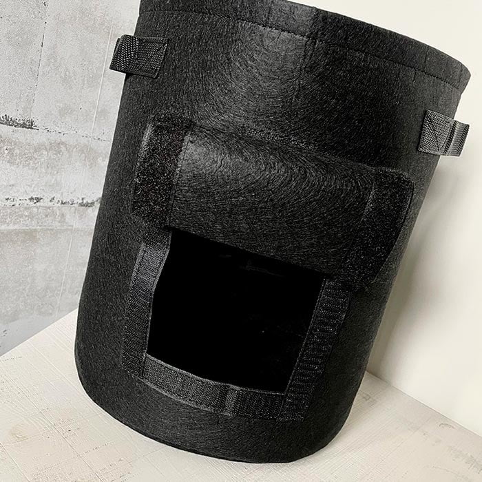 Met deze design kweekzak tover je jouw moestuin om tot een hippe kweekplek. De kweekzak is ideaal om ondergrondse gewassen zoals aardappelen, wortels, uien en pinda’s te kweken. Door het luikje kan je namelijk goed zien hoe de gewassen groeien en kan je ze ook makkelijk oogsten. Het voordeel van deze kweekzak ten opzichte van plastic kweekzakken is dat deze kweekzak overtollig water makkelijk laat lopen. Hierdoor is er geen kans op (wortel)rotten.