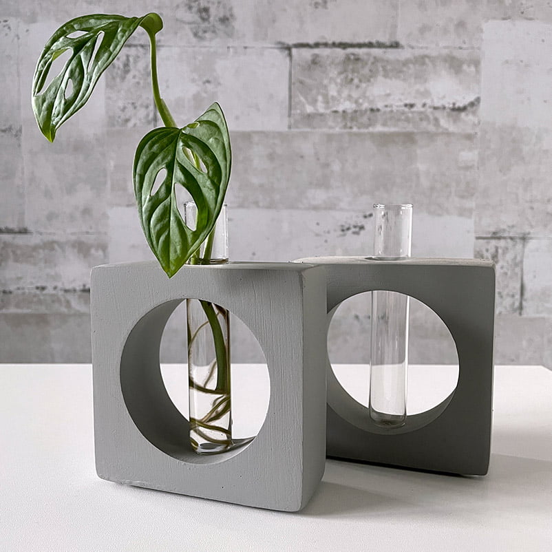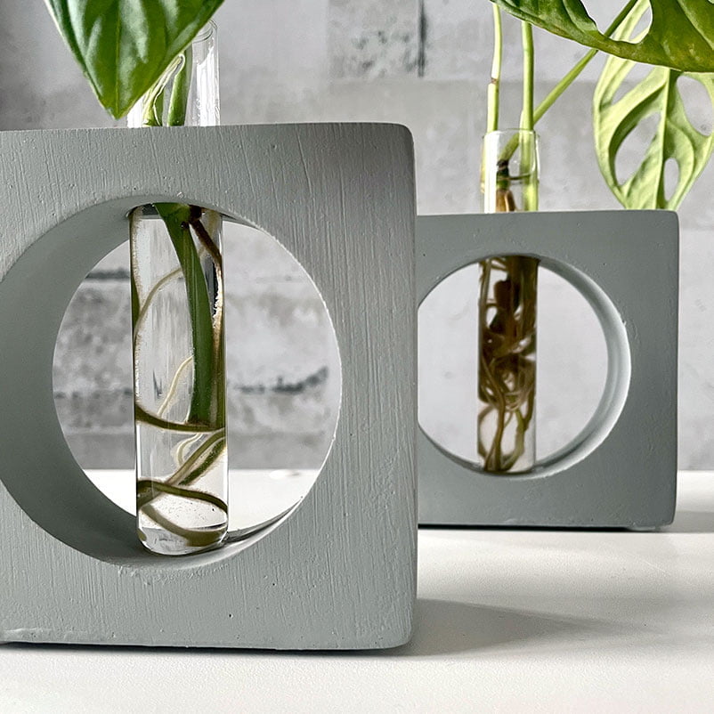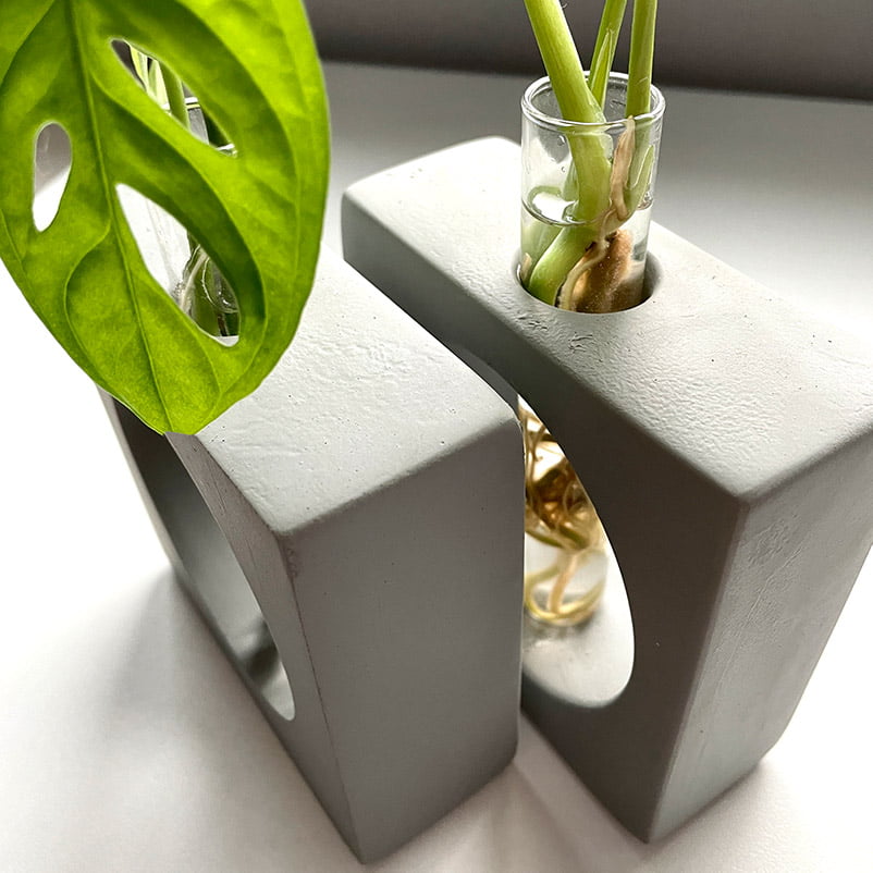 Als plantenliefhebber zijn deze twee cementvaasjes echt feestje om naar te kijken. Geef het een plekje in je interieur en zo kan je dagelijks de groei van de stekjes in de gaten houden. Als de stekjes worteltjes aanmaken, wordt het een nog mooier plaatje! Heb jij nu niet zulke groene vingers? Dan kan je op safe gaan en kiezen voor gedroogde bloemetjes. Pluk ze langs de kant van de weg en laat ze drogen of shop de droogbloemen bij een winkeltje.